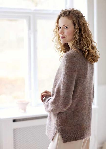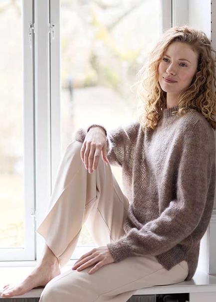 Alternativt kan du strikke med én tråd Baby Alpaca fra Langyarns og én tråd Silk Mohair eller én tråd garn, fx Merino 120 fra Langyarns.