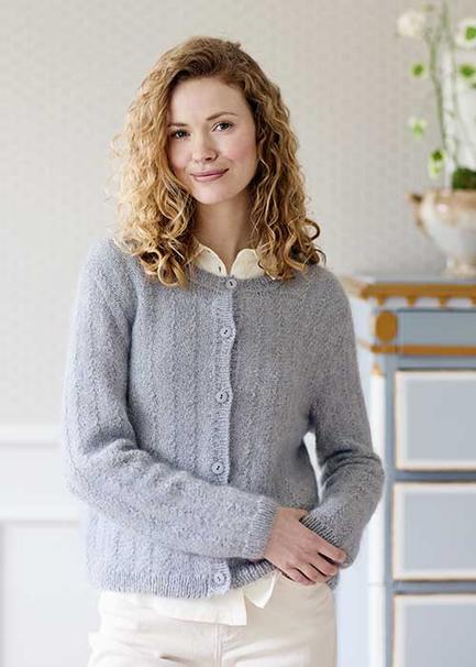 På dette kursus lærer du at strikke en smuk og klassisk cardigan, som vist på billedet, i størrelser fra XS til 4XL med en brystvidde fra 85 til 155 cm.