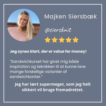 I kurset lærer du ud over sandwichmetoden også, hvordan du strikker det rette antal masker op, så du samtidig skjuler eventuelle fejl og ujævnheder.